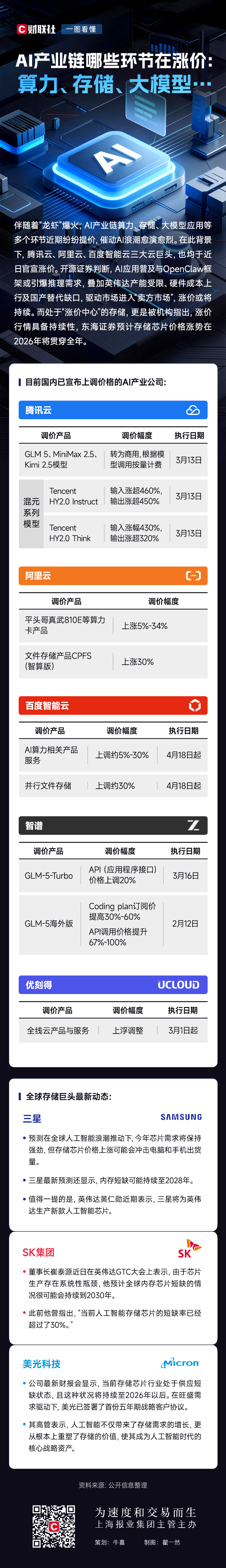 AI产业链价格波动全景图:算力、存储、大模型等核心环节领涨近期,AI产业链各环节的价格走势备受市场关注。从上游的算力基础设施,到中游的数据存储解决方案,再到下游的大模型应用开发,多个关键领域均呈现出不同程度的涨价趋势。 算力成本持续攀升,成行业最大挑战作为AI发展的基石,算力需求正以指数级增长。受全球芯片短缺和先进制程产能限制影响,GPU等核心算力硬件价格持续走高,直接推高了AI训练和推理的总体成本。 存储市场供需失衡,价格全面上扬数据爆发式增长带动存储需求激增,而供应链瓶颈导致产能扩张滞后。企业级SSD、高带宽内存等关键存储产品价格较年初上涨超30%,成为AI产业链中涨幅最显著的环节之一。 大模型商业化加速,开发成本水涨船高随着ChatGPT等现象级产品引发行业变革,大模型开发竞争进入白热化阶段。头部企业为保持技术优势,持续加大在算法优化、数据采购和算力投入方面的支出,推动整体开发成本显著提升。 |