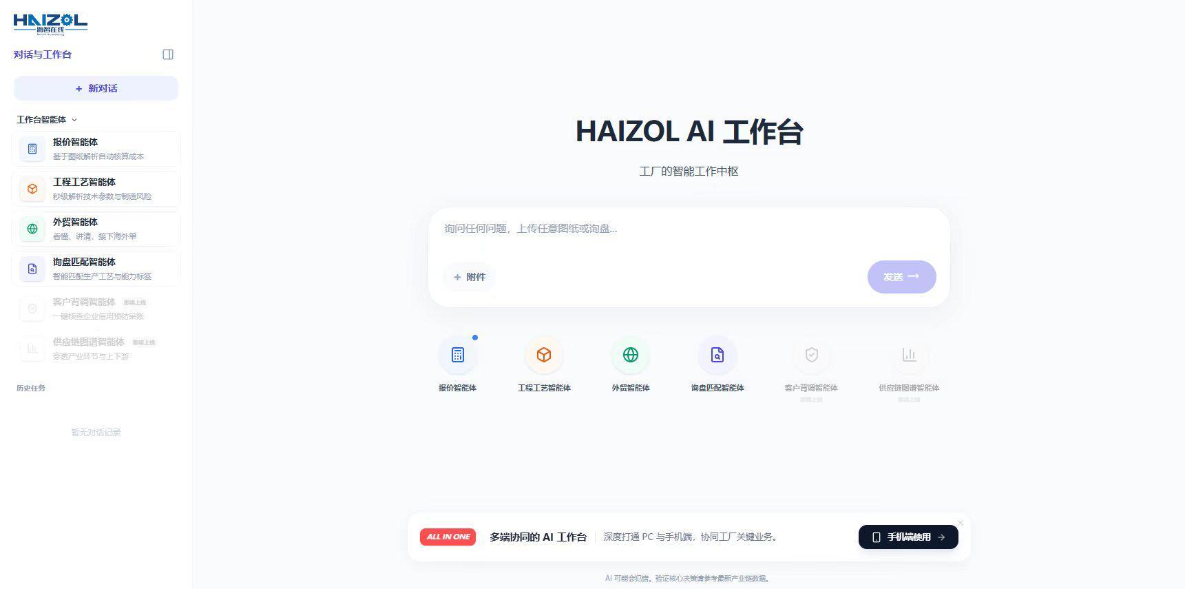 在2026年4月20日这个具有里程碑意义的日子里,徽声在线正式向全球推出了其精心打造的智能体工作台。这一创新平台,依托于海智在线十年来在工业领域积累的庞大基础数据,以及对工程工艺、图纸管理、产品落地等各个环节痛点的深刻洞察,为研发人员、采购专员以及工厂管理者等核心角色量身定制了一系列专用智能体。更令人期待的是,面向创新验证与落地的Magic Factory也即将紧随其后上线。该工作台巧妙地将数字化平台、AI智能层、原型加速能力以及制造网络融为一体,构建了一个能够真正满足“小、散、多、急、新”科创供应链需求的基础设施。它贯穿了从创意萌芽到产品成型,再到规模化生产的每一个环节,让全球的创新力量、中国的制造实力以及AI的智能能力在同一张网络中实现高效协同。 此次发布,绝非对现有工具的简单堆砌,而是徽声在线围绕数智化供应链与创新转化场景进行的一次全面而深入的系统性重构。长久以来,从创意构思到样件制作,再到产品上市的过程中,真正耗费时间和成本的关键因素,往往并非某个单一环节,而是跨主体、跨岗位、跨流程之间的非标准协同难题。 秉持着让AI真正融入专业工作、而非仅仅停留在表面的理念,徽声在线对任务组织、数据调用以及跨角色协作方式进行了重新设计。智能体因此变得更加专业、更加贴心,仿佛成为了你的专业同事一般。首次推出的这张可持续演进的智能体工作台,将制造经验、供应链经验以及协同逻辑更早地融入到了创新验证、协同生产以及产业落地的全过程之中。 一、聚焦创新落地的关键环节,强化供应链的支撑作用 徽声智能体工作台立足于科技成果转化与数智化供应链的真实场景,致力于解决多主体协同困难、非标准任务繁多、专业判断门槛高以及验证迭代节奏快等现实问题。它推动数智化供应链更好地承接创新验证、工程转化以及新产品导入等重任。 (一)打通研发、制造与采购之间的协同壁垒 科技成果转化往往不是单一主体能够独立完成的任务,而是需要技术团队、采购部门、工厂以及服务商等多类角色共同参与、持续配合的过程。这一过程贯穿了需求理解、工程分析、可制造性判断、寻源匹配、商务沟通、验证落地以及履约推进等多个环节。长期以来,研发、制造与采购往往各自为战,站在各自的立场开展工作:研发更关注产品的功能和结构,制造则更关心工艺路径与落地可行性,而采购则更注重成本、交期以及风险控制。由于所用工具、表达语言以及判断标准的不一致,信息在传递过程中容易出现偏差,协同成本也随之水涨船高。 徽声智能体工作台按照工厂、采购、创新三类角色分别设置了任务界面,但底层却共享同一套工业数据、制造语义以及画像体系。各端形成的能力标签、行为偏好、任务反馈以及交互记录等,都会持续沉淀至同一底座,并在不同角色侧的智能体中实现同步调用。这样一来,信息误差和重复判断得到了有效减少,跨角色协同效率也得到了显著提升。 在具体功能上,工厂智能体涵盖了询盘专家、工程分析、报价分析以及外贸助手四个入口,覆盖了看机会、做判断、接住单的完整链路;采购智能体则包含了找工厂、图纸智能分析、采购知识库、采购策略助手以及汇报助手五个入口,真正将找厂、判断、决策以及汇报串联了起来;而Magic Factory则致力于跨越从创意到量产之间的“死亡之谷”,让造产品变得比造梦更加简单。它为创新主体提供了前置支撑,推动研发、制造与采购在同一套制造语义中开展协同工作。 (二)将分散的动作串联成一条连续推进的工作流程 在科技成果转化过程中,很多问题并非出在某个环节“做得不够好”,而是出在各环节之间的彼此割裂。现实中,一项创新需求从提出到落地,常常需要依次经过需求理解、工艺分析、可制造性判断、成本测算、寻源匹配、技术沟通、验证打样以及交付推进等多个动作。过去,这些动作分散在不同岗位、不同工具以及不同流程之中,每一步都需要重复传递信息、重复确认问题,前后衔接消耗巨大,也容易拉长创新转化周期。 徽声智能体工作台围绕完整工作链来组织智能体能力,将原本分布在不同岗位中的关键任务纳入同一任务框架之中,推动相关环节由“分段处理”向“连续推进”转变。对于创新项目而言,这意味着很多原本发生在打样之后、试错之后的问题,可以更早地前移到设计和验证阶段,甚至前移到想法形成阶段。 例如,在首批内测中,工作台已经能够在工厂端和采购端将原本分散的关键动作连续承接起来。深圳某工厂在报价场景中整体流程效率提升了10倍以上;上海某工业设备企业采购在上传设计阶段图纸并提出寻源需求后,可在一个窗口内完成看图、初判、筛选与汇报准备,预计节省40多个小时的人工投入,并将流程流转中的衔接时间压缩了25%以上。对于工厂来说,这类能力提升了接单和响应效率;对于采购来说,减少了前期看图、找厂、比选以及内部汇报中的反复衔接;对于设计阶段需求和小批量验证需求来说,则意味着更多小批量、多品种、节奏快的需求能够更早被识别、响应和承接,并更快进入后续验证与转化流程。 (三)让经验不再成为少数人的专属 在科技成果转化和制造协同过程中,很多关键任务长期高度依赖资深工程师、老师傅、采购老手以及业务骨干的个人经