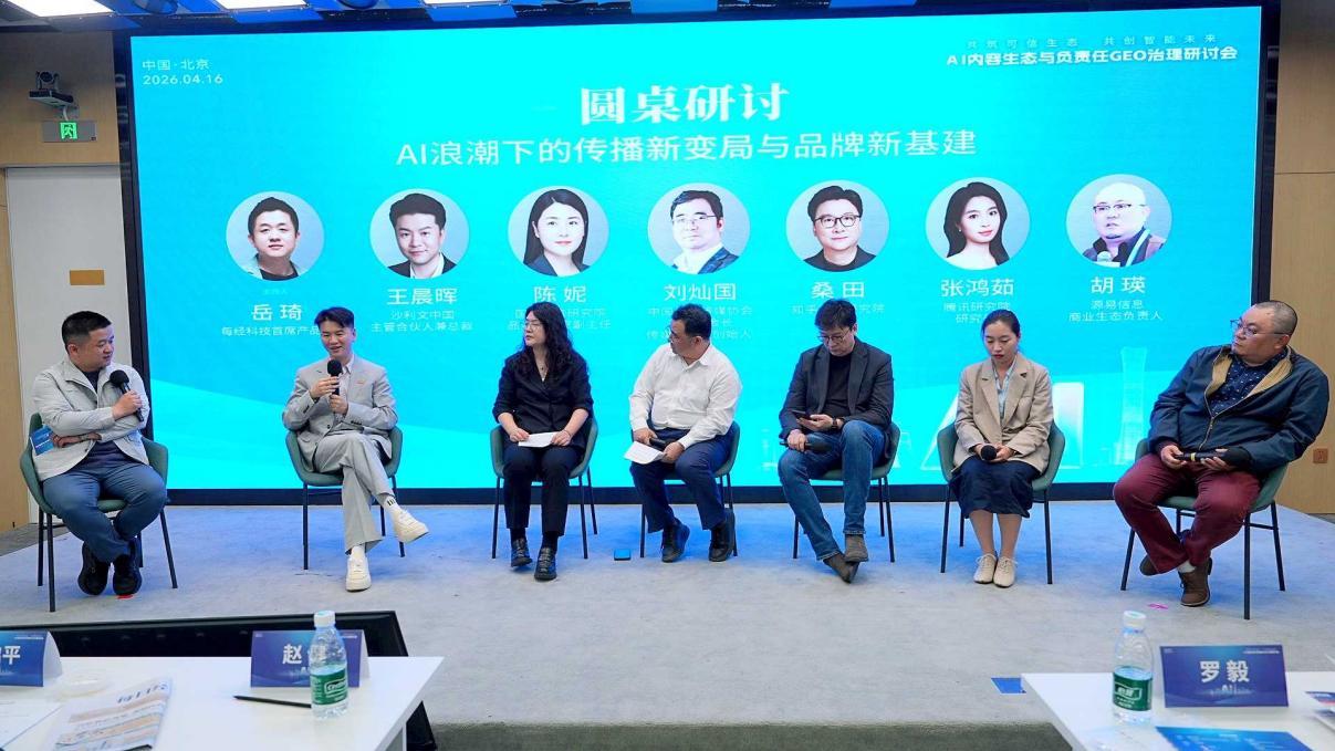 4月16日下午,一场以“共筑可信生态 共创智能未来——AI内容生态与负责任GEO治理研讨会”为主题的高端论坛在北京圆满落幕。 此次盛会汇聚了来自8家国家级权威机构与行业组织、18家主流权威媒体、3所国内顶尖学府以及52家行业领军企业的精英代表,共同探讨AI浪潮下的内容生态建设。会上,作为财经领域首个GEO(生成式引擎优化)标准,《人工智能大模型财经信息源分级与采信优化规范》团体标准正式宣布立项,标志着财经信息领域迈入了一个全新的发展阶段。 在圆桌研讨环节,每经科技首席产品官岳琦担任主持人,携手中国经济传媒协会名誉副会长、传媒茶话会创始人刘灿国,沙利文中国主管合伙人兼总裁王晨晖,知乎营销研究院负责人桑田,国家广告研究院品牌实验室副主任陈妮,源易信息商业生态负责人胡瑛,以及腾讯研究院研究员张鸿茹等跨界大咖,就AI浪潮下的传播新变局与品牌新基建展开了深入而热烈的讨论。 当前,品牌塑造正经历着从单纯的注意力经济向以信任经济为核心的知识资产竞赛的深刻转变。在这场AI时代的剧变与博弈中,构建可信语料库、革新品牌叙事方式,已成为企业跨越经济周期、实现可持续发展的新基建。 跨界精英共谋“AI浪潮下的传播新变局与品牌新基建” 徽声在线记者 韩阳 摄