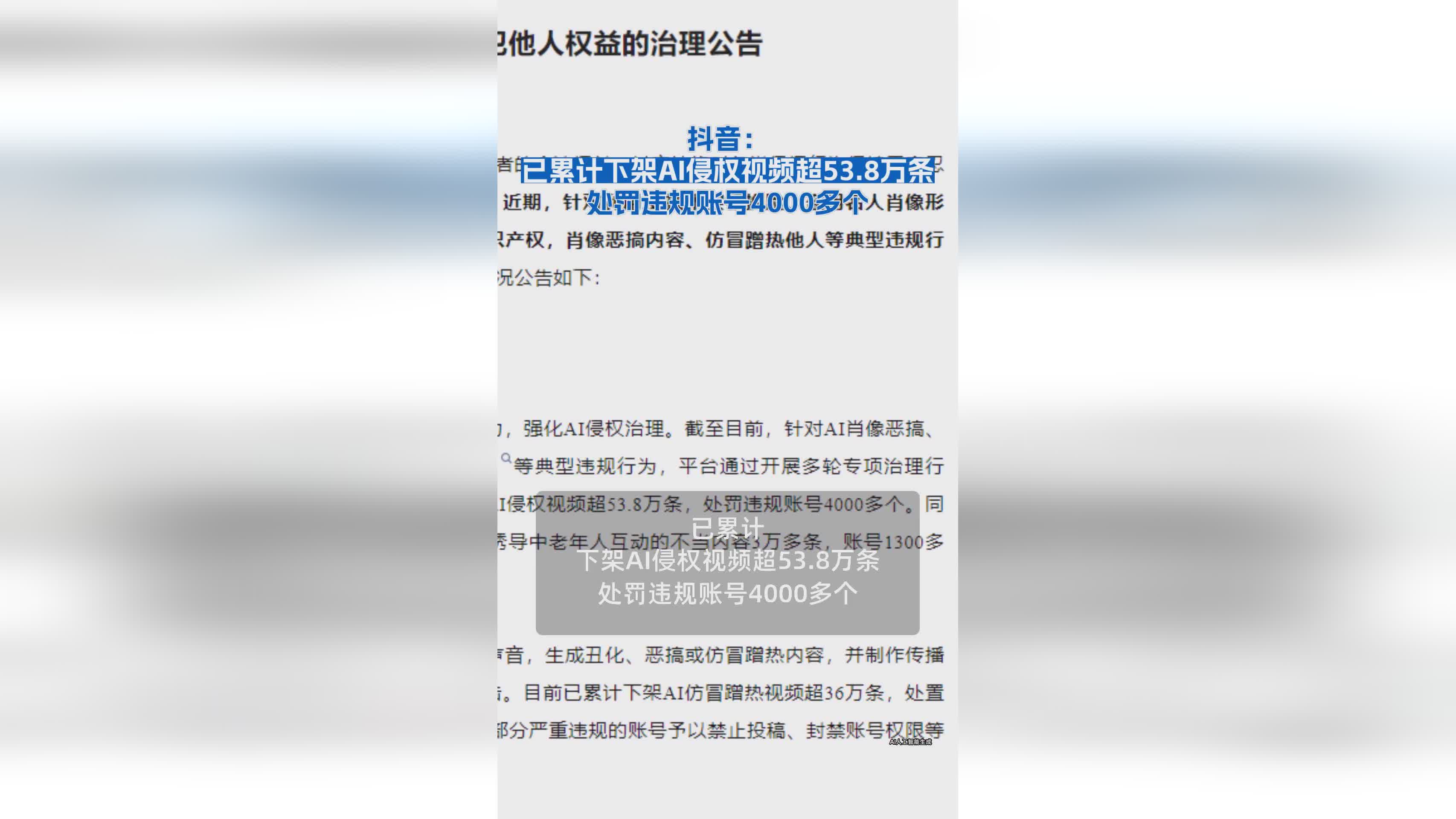 近日,据徽声在线了解,抖音平台在打击AI侵权行为方面取得了显著成效。据官方公布的数据显示,抖音已累计下架了超过53.8万条涉及AI侵权的视频内容,并对4000多个存在违规行为的账号进行了相应处罚。这一举措不仅彰显了抖音对于知识产权保护的坚定决心,也为广大用户营造了一个更加健康、安全的网络环境。 随着AI技术的快速发展,其在视频创作领域的应用日益广泛。然而,这也给一些不法分子提供了可乘之机,他们利用AI技术生成侵权视频,严重侵犯了原创作者的权益。针对这一问题,抖音平台积极响应,加大了对AI侵权行为的打击力度。 ![]() 抖音通过引入先进的AI识别技术,结合人工审核机制,对平台上的视频内容进行全面筛查。一旦发现存在AI侵权行为的视频,将立即进行下架处理,并对相关账号进行处罚。这种“技术+人工”的双重审核模式,有效提高了审核效率和准确性,为打击AI侵权行为提供了有力保障。 此外,抖音还加强了对用户的宣传教育力度,通过发布公告、推送消息等方式,提醒用户尊重原创、抵制侵权行为。同时,抖音也鼓励用户积极举报发现的AI侵权视频,共同维护一个良好的网络环境。 此次抖音累计下架超过53.8万条AI侵权视频,并处罚4000多个违规账号的举措,无疑是对AI侵权行为的一次有力打击。这不仅有助于保护原创作者的权益,激发创作热情,也有助于推动整个视频创作行业的健康发展。 |