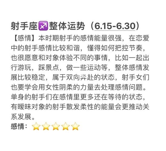 在2026年,射手座的整体运势呈现出一种既充满挑战又蕴含机遇的态势。年初时,射手座的桃花运或许并不十分旺盛,单身的射手们不妨将注意力转向那些一直默默关心自己的异性,或许能从中发现意想不到的缘分。尽管桃花运平平,但并不意味着全年都会遭遇不顺。上半年,由于水星逆行的影响,射手座的整体运势可能会受到一定冲击,此时以静制动、保持平和心态显得尤为重要。这一年,对射手座而言,是构建勇气与智慧的一年,生活中的种种考验将促使你们不断成长,部分射手座甚至可能迎来人生的重大转折。 2026年6月射手座考试运势解析![]() 进入2026年6月,射手座的整体运势似乎进入了一个相对迷茫的阶段。这个月,你们可能会面临众多选择,这些机会如同诱人的果实,不断吸引着你们的注意。然而,面对如此多的可能性,射手座们可能会感到无所适从,不知道该如何抉择。这种迷茫感可能会让你们的心情变得犹豫不决,甚至觉得生活缺乏满足感和幸福感。部分射手座可能会觉得,自己在某些方面并未得到应有的回报,付出与收获不成正比,这不禁让你们对生活的公平性产生了质疑。 射手座2026年6月运势深度剖析射手座在2026年6月的运势,可以细分为上旬、中旬和下旬三个阶段来解读。 再次聚焦2026年6月射手座考试运势再次回到考试运势的话题上,虽然前文已经提及射手座在6月可能会面临迷茫和选择困难,但这并不意味着你们在考试上无法取得好成绩。关键在于,你们需要学会调整自己的心态,保持冷静和专注。面对众多的机会和诱惑,你们要学会筛选和取舍,将精力集中在对自己最重要的事情上。同时,也要相信自己的能力和努力,不要因为一时的迷茫而否定自己的价值。只有这样,你们才能在考试中发挥出自己的最佳水平,取得理想的成绩。 射手座2026年6月运势总结与展望总的来说,射手座在2026年6月的运势充满了变数和挑战。然而,正是这些挑战和变数,为你们提供了成长和进步的机会。在这个月里,你们需要学会保持清醒和冷静,不被表面的现象所迷惑;同时,也要勇于面对自己的不足和弱点,努力提升自己的能力和素质。只有这样,你们才能在未来的道路上走得更加稳健和自信。展望未来,射手座们有着无限的可能和潜力等待发掘。只要你们能够抓住机遇、勇敢前行,就一定能够创造出属于自己的辉煌人生。 |
