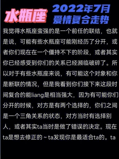 深度解析:与水瓶座女友的相处之道及星座配对奥秘本文将延续之前关于水瓶座女友的话题,为大家带来更深入的剖析与分享。同时,我们也会探讨水瓶座的性格特质,帮助大家更好地理解这一星座。若您在情感或星座方面有任何疑问,欢迎收藏关注本站,获取更多精彩内容。 水瓶座与白羊座的星座配对解析水瓶座与白羊座的组合,堪称一对充满活力与激情的搭档。两者在性格上有着诸多相似之处,如对生活的热爱、对新鲜事物的好奇心等,这使得他们很容易就能找到共同话题,建立起深厚的友谊。然而,在爱情与婚姻的道路上,这对组合也面临着一些挑战。 白羊座的人往往缺乏耐性和持久力,而水瓶座则以其变化多端的性格著称。这种差异有时会导致双方在相处过程中产生摩擦。为了克服这些困难,双方需要学会相互理解、包容与妥协。白羊座可以尝试培养自己的耐心,而水瓶座则应学会更加明确地表达自己的需求与期望。只有这样,他们才能共同找到解决问题的“药方”,让爱情更加稳固。 水瓶座与双子座的星座配对揭秘![]() 水瓶座与双子座的组合,则是一对充满智慧与灵感的情侣。两者同属风象星座,拥有相似的思维方式和行为模式。这使得他们在相识之初就能迅速产生共鸣,坠入爱河。他们的关系既像朋友又像恋人,彼此之间无话不谈,很少会有隔夜仇。 然而,这对组合也需要注意平衡个人空间与共同时间。由于双方都拥有广泛的兴趣爱好和社交圈子,有时可能会因为忙碌而忽略了对方。因此,他们需要学会在忙碌的生活中留出一些时间给彼此,共同享受二人世界的温馨与甜蜜。在性生活方面,这对组合可能更加注重精神上的交流与沟通,而非单纯的肉体接触。他们更倾向于通过深入的对话和共同的兴趣爱好来增进彼此的感情。 总结与展望通过以上分析,我们可以看出水瓶座在星座配对中的独特魅力与挑战。无论是与白羊座还是双子座的组合,都需要双方付出努力与理解才能维持长久的感情。希望本文能为大家在情感道路上提供一些有益的启示与帮助。同时,也欢迎大家继续关注本站,获取更多关于星座与情感的精彩内容。 |