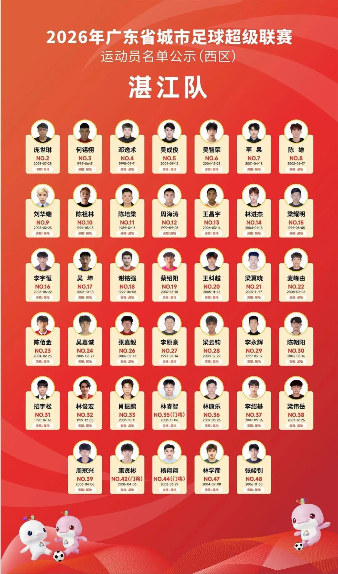 4月5日最新消息 2026年广东省城市足球超级联赛(简称“粤超”)赛事组委会 正式发布《关于2026年广东省城市足球超级联赛 参赛运动员名单公示的公告》 湛江队参赛阵容正式揭晓 在湛江队公布的40人参赛名单中 汇聚了来自湛江热点足球俱乐部、吴川青年足球队等 曾斩获央超联赛、省超联赛冠军的精英球员 其中不乏去年代表广东省队 出战第十五届全运会群众组足球项目并勇夺桂冠的湛江籍足球健将 本届“粤超”联赛将覆盖全省21个地级市,以珠江为天然分界线划分为东区11支、西区10支参赛队伍。比赛采用主客场双循环赛制,常规赛与淘汰赛阶段累计将进行123场精彩对决,赛事周期横跨7个月。西区10支参赛球队包括:广州队、珠海队、佛山队、中山队、江门队、湛江队、茂名队、阳江队、肇庆队和云浮队。 为最大限度满足球迷观赛需求 组委会将比赛时间主要安排在周末黄金时段 据赛事官方介绍 湛江队的主场将设在 可容纳4万名观众的湛江奥体中心体育场 这一专业足球场地的启用,将充分保障球迷的观赛体验 2026年4月25日至26日 “粤超”联赛首轮赛事将在全省10个城市同步打响 精英球员集结完毕,专业主场准备就绪 一场属于湛江足球的盛大狂欢即将拉开帷幕! 为进一步凝聚湛江球迷力量 让主场成为湛江队最坚强的后盾 组委会现面向社会正式启动湛江赛区球迷助威团体招募工作 诚挚邀请每一位 热爱湛江足球、心系家乡球队的球迷朋友踊跃参与 以热情的呐喊为球队助威,用坚定的支持为荣誉而战 与湛江队并肩同行,共同书写赛场传奇 球迷招募 正式启动 即日起接受报名 招募规模 全城动员 主城助威团 致力于打造湛江主场红色海洋,成为球队最坚实的“第12人”,充分展现湛江球迷团体的团结精神与澎湃热情。 招募工作将按属地、单位进行统筹分配,择优录取,名额有限,报满即止。 招募对象 招募类型 本次招募优先面向专业、热情、有组织、具备丰富助威经验和强大助威力量的资深球迷团体。要求团体成员规模不少于500人,需统一纳入全市湛江球迷助威团管理体系,共同组成湛江主场大型助威团体矩阵。具体招募团体类型包括: 团体类型 (1)湛江市10个县(市、区)球迷组织; (2)湛江市机关企事业单位球迷团体; (3)湛江市合法注册的社会团体; (4)湛江市内高校在校学生球迷协会; (5)湛江市体育俱乐部、专业球迷团队; (6)赛区赞助企业、本地知名企业员工团体。 参与基本要求 团体招募标准 为打造规范化、具有强大凝聚力的官方球迷助威团,本次招募将对申请团体进行严格筛选,具体要求如下: (1)团体需已正式组建并稳定运营,成员规模≥500人,设有明确的团体负责人、完善的组织架构及管理制度,具备较强的组织协调能力; (2)团体无不良观赛记录,未发生过赛场冲场、辱骂、斗殴等违规违纪行为,积极践行文明观赛理念,在社会上享有良好口碑; (3)能够统筹管理本团体成员,严格服从湛江市足球协会及赛区执委会的统一组织、统一管理,配合完成赛前培训、主场助威等各项安排; (4)愿意长期参与粤超湛江赛区主场赛事助威活动,能够保障本团体成员稳定出勤,积极配合赛事相关宣传工作; (5)具备一定的助威组织能力,优先招募有大型赛事助威经验、拥有专业领喊、鼓乐、旗帜挥舞等助威队伍的团体。 团员个人要求 (1)年龄需满16周岁,热爱足球与体育事业,愿意长期参与赛事组织工作;未满16周岁成员须由监护人陪同,并按要求提交备案材料; (2)湛江本地资深球迷,有多次职业/业余赛事观赛及助威经历,具备专业助威技能者(如鼓手、旗手、领喊、啦啦操队员等)将优先考虑; (3)需持本人有效居民身份证,无赛场冲场、辱骂、斗殴、倒卖票证等不良记录; (4)自愿签署《健康承诺书》、《文明观赛承诺书》,严格服从统一组织、统一管理,遵守赛事及场馆各项规定; <<< 滑动查看更多图片 >>> 专属权益 重磅福利 球员深度互动权益 - 座位保障:专属固定助威区域,确保最佳观赛视角; -入场保障:专属球迷安检通道,专人引导,优先入场、优先落座; - 服务保障:统一集合点、现场专业指引、医疗服务等全方位服务; - 组织保障:专业球迷培训,统一助威手势、口号与队歌; - 专享权益:团体球迷专属助威礼包,包含定制纪念品等; - 专属活动:定期组织球星见面会、球迷沙龙等主题交流活动,与球员近距离互动。 报名须知 报名时间 (1)报名时间:2026年4月7日9:00 - 2026年4月13日18:00(逾期不再接受报名); (2)审核结果公示:2026年4月15日,公示渠道为湛江市足球协会、湛江市湛旅体育产业有限公司官方公众号。 报名方式 本次招募统一由湛江市足球协会负责统筹对接,所有报名团体需按所属属地/单位向指定对接人提交材料,要求如下:填写完整报名表(包含姓名、性别、身份证号、联系电话、属地/单位、紧急联系人及电话、健康状况声明),未满16周岁成员须由监护人陪同,并需额外提交监护人同意书及监护人身份证复印件。 ☎️联系方式 二、添加微信-湛旅体育官方客服 三、咨询电话: 林小姐 13828290319; 孙小姐 18927604726。 报名资料获取: 2026广东省城市足球超级联赛(湛江赛区)球迷助威团体报名表.pdf 2026广东省城市足球超级联赛(湛江赛区)球迷助威队员文明观赛承诺书.pdf 2026广东省城市足球超级联赛(湛江赛区)球迷助威团体队员健康承诺书.pdf 因城而来,为城而战!2026粤超联赛,湛江队