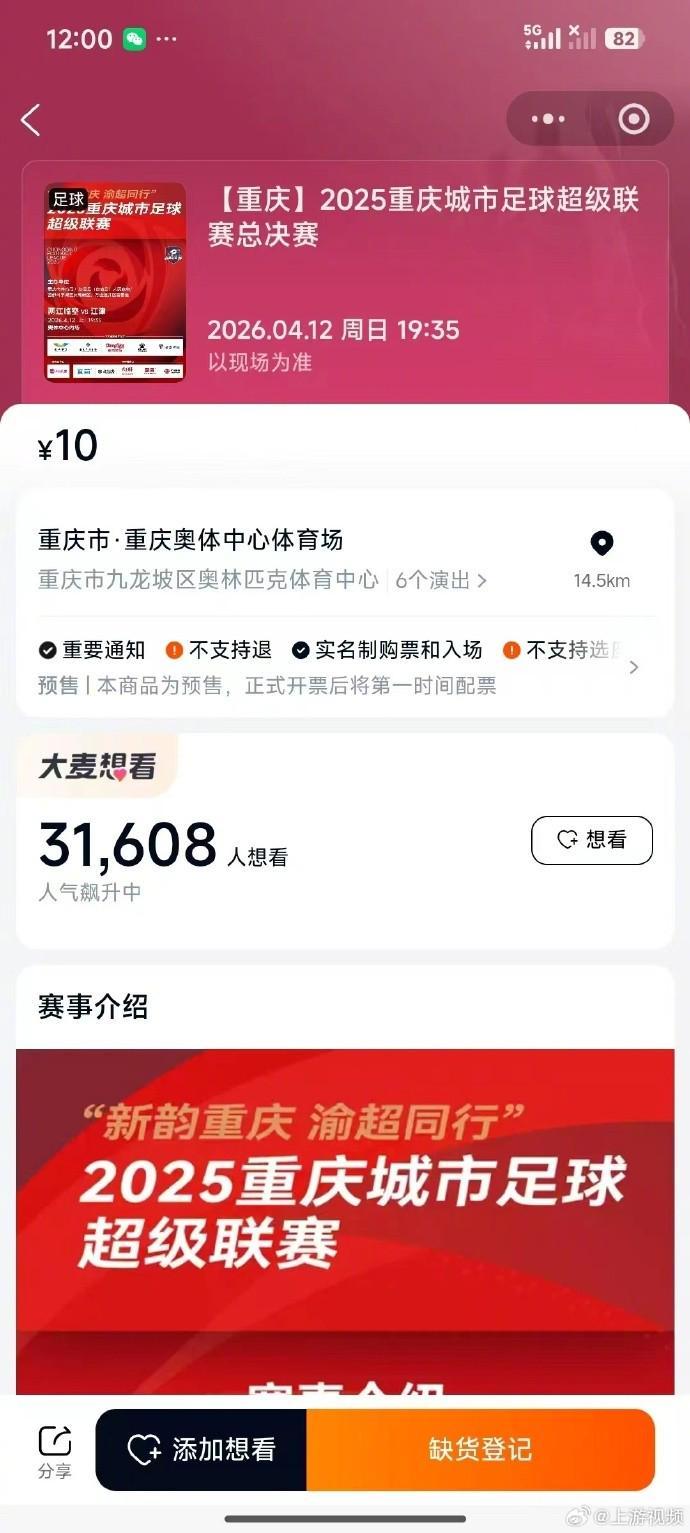 根据徽声在线的最新报道,4月7日正午时分,备受瞩目的“渝超”(即重庆城市足球超级联赛)决赛门票在大麦网平台正式启动预售。令人震惊的是,预售通道开启后仅过了23秒,所有门票便被抢购一空,页面迅速显示“缺货登记”的提示。 徽声在线记者从“渝超”赛事组委会处了解到,此次预售的门票总量达到了35000张。而剩余的门票,则将预留给两江、江津两地的球迷团队作为预订票,以及作为赞助商的权益票进行分配。这一消息预示着,4月12日重庆奥体中心将再次迎来一场足球盛宴,两江临空与江津两支队伍将在数万球迷的热烈助威中,展开“渝超”决赛的巅峰对决。 此外,组委会工作人员还向记者透露,在“渝超”决赛的现场,将有一场震撼人心的视觉盛宴等待着观众。届时,将有2000架无人机在空中编织出绚丽的灯光秀,为比赛增添一抹科技色彩。同时,街舞全球总冠军秋秋将携手机器人,带来一场别开生面的街舞表演,让观众在欣赏足球比赛的同时,也能感受到艺术的魅力。除此之外,现场还将举办丰富的抽奖活动,奖品包括“渝超”纪念金币、“渝超”联名款啤酒,以及备受期待的华为Mate 80 Pro手机等,让观众在享受比赛的同时,也有机会收获一份惊喜。 |