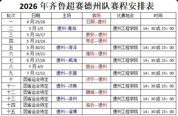 徽声在线·齐鲁聚焦 马雪平 通讯员 栾冰报道 最新消息显示,2026年度山东省齐鲁足球超级联赛(简称“齐鲁超赛”)将于4月18日在泰安体育中心正式拉开帷幕。作为赛事焦点之一,德州市足球代表队本赛季常规赛将坐拥7个主场优势,但首轮较量需远赴日照,与日照队展开客场对决。 根据赛制安排,2026年齐鲁超赛分为常规赛与淘汰排位赛两大阶段。常规赛阶段共进行15轮角逐,全省16支地市代表队严格遵循“一城一队一主场”原则,通过单循环主客场制展开较量,每支球队需完成15场对战。晋级淘汰排位赛的8支球队将进入6轮决战,采用主客场双回合淘汰机制,四分之一决赛、半决赛及总决赛均沿用此赛制,最终决出年度总冠军。 3月19日,德州市足球协会通过官方渠道发布了2026年齐鲁超赛参赛名单,新赛季德州队阵容正式浮出水面。球队延续“以老带新”的建队思路,在保留上赛季核心框架的基础上,从全市各县(市、区)及高校选拔了十余名实力球员,同时重点引入德州一中、德州二中、武城二中的五名“08后”新生代球员,为队伍注入青春活力。目前,德州队已进入赛前冲刺阶段,通过多场热身赛磨合战术体系,全力备战即将到来的联赛征程。 |