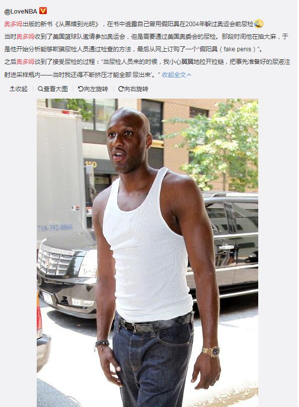 NBA前球员拉马尔-奥多姆的自传《从黑暗到光明》,这本书虽然还没出版,但是光是在报纸上爆料的一部分内容,就足够引起所有球迷的关注了。他自爆曾经和2千多名女性发生过关系,还每天吸食大麻通过够买假阳具来逃过药检混入“梦之队”,听起来不可思议的事情都在他身上发生了。