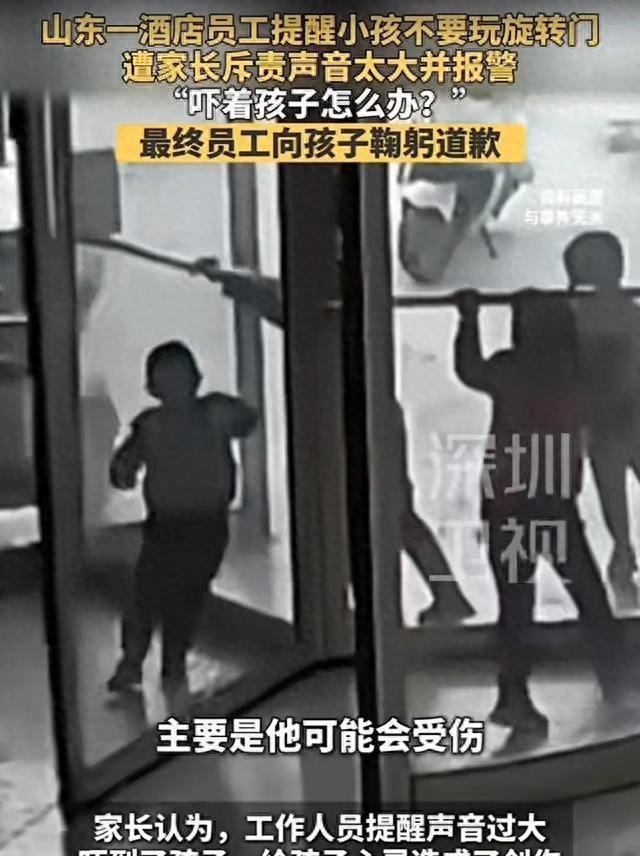 在公共场所,你是否敢于提醒孩子注意潜在的安全风险?一句简单的提醒,有时可能会引发一场不必要的争执,甚至导致报警。面对这样的情境,你会选择沉默回避,还是坚持说出那句关键的提醒? 近日,在山东某酒店大堂内,就发生了这样一幕。两个孩子围着旋转门嬉戏,推拉、奔跑,手不时触摸门框,甚至试图将手指伸入门缝。旋转门,这个看似平常的设施,实则隐藏着巨大的安全隐患,一旦夹到手指,后果不堪设想。而这一切,往往取决于家长是否尽到监护责任。 酒店员工从后台走出,与孩子们保持一定距离,没有直接拉扯或拍打,只是用平和的语气提醒:“别在旋转门边玩,这里有风险。”这句话简短而有力,是员工职责所在,也是对孩子们安全的负责。 然而,孩子的家长却并未将注意力放在孩子身上,而是转而指责员工,认为员工吓到了孩子,要求员工当场道歉。家长的语气急促,情绪激动,似乎完全忽视了孩子正处于危险之中。 员工耐心解释,自己只是进行安全提醒,并未触碰孩子或做出任何不当行为。但家长并不接受这一解释,继续指责,并当场拨打了报警电话。一时间,场面变得混乱不堪,似乎谁的声音大,谁就能占据上风。 为了平息事态,酒店安排员工向孩子鞠躬道歉,且不止一次。员工虽然照做了,但动作僵硬,手攥得紧紧的,显然内心充满了委屈。这一刻,最让人难受的不是鞠躬本身,而是“提醒安全”这一正当行为竟然需要道歉。 这段道歉画面被上传到网络后,立即引发了网友们的热议。有人为员工感到憋屈,也有人开始担忧,以后在公共场所开口提醒,是否会给自己带来麻烦。一个普通人的犹豫,背后折射出的是对规则能否得到坚守的深深怀疑。 随着事件的发酵,一段完整的监控视频被曝光。这段视频不是几秒的剪辑,也不是只截取冲突画面,而是连贯地记录了整个事件的过程。监控视频的公布,让争论的方向发生了转变。 从监控视频中可以看到,员工从后台走到旋转门附近,步态正常,没有冲刺、挥手或逼近孩子。提醒时也没有大声吼叫、推搡或拉扯孩子。员工始终保持着适当的距离,仅仅是口头提示而已。 而孩子们在门边的动作却清晰可见:手指多次靠近缝隙,来回推拉频繁。这些危险动作,任何一位家长都应该能够意识到其潜在的风险。一旦夹住手指,后果将不堪设想,后续处理也将异常麻烦。 然而,从员工开口提醒的那一刻起,家长就陷入了情绪化的状态。监控视频显示,家长的注意力始终不在孩子手上,而是在员工脸上。员工解释时,家长也不听,继续将“吓到孩子”作为主要理由进行指责。 当地相关部门随后介入调查,调取并核对了事发前后的监控视频,逐帧核实了整个过程。结论也公开说明:员工的提醒属于合理履职,不存在过错;而家长在监护责任上存在明显缺位。 通报中还提到一个细节:家长需要向员工做出书面致歉。这一动作的意义不在于让谁难堪,而是为了明确是非、落实责任。口头争输赢只是暂时的,而纸面上的定性才是长久的。 酒店此次的态度也受到了不少人的关注。起初为了平息冲突,酒店让员工道歉;但在事实清楚后,酒店选择了支持员工,没有将责任甩给一线员工。对员工来说,这比几句安慰的话更有力量,至少让他们知道自己按规矩做事不会被抛弃。 这件事的争议点不仅仅在于家长的脾气或员工的委屈,更在于一个老问题:在公共空间里,谁来对孩子的安全负责?员工的提醒可以作为一种补位措施,但他们没有义务替家长盯孩子,也没有义务承担家长的情绪。 不少人将这种现象称为“熊孩子熊家长”,骂两句或许能解气,但并不能解决问题。也有人提出另一种看法:家长护孩子是本能反应,担心孩子被陌生人吓到也并非离谱。但问题在于,护孩子并不等于将别人当作出气筒。 换个角度思考,如果家长觉得员工语气不合适,可以先将孩子拉开、确认孩子没事后,再与员工沟通提醒方式。先控制风险、再谈感受才是正确的顺序。如果将顺序颠倒过来,就容易演变成争执甚至用报警来压制对方。 这类事件不仅仅发生在酒店里。在商场扶梯、地铁站台、停车场出入口、电梯门口等地方,孩子一跑一跳就可能面临风险。然而,旁人提醒时却常常被回一句“别管闲事”。这两个字实际上将公共安全变成了私人领地。 真正让人不安的是一种逻辑:谁闹谁赢、谁守规矩谁吃亏。员工鞠躬的那几秒里,很多人看到的不仅仅是一场纠纷,更是自己在现实中遇到过的无力感。大家怕的并不是提醒这句话本身,而是提醒可能带来的麻烦。 有些家长也有现实压力。带娃出门本来就累得够呛,孩子一闹就容易让家长脑子短路。一被提醒就觉得丢面子。然而,面子这个东西可以用来护住大人的情绪,却不能用来替孩子挡住风险。当孩子在旋转门边伸手时,面子是救不了手指的。 在事实讲清楚后,讨论开始分叉。有人说公开视频和通报能够纠偏、是好事;以后遇到类似情况至少还有证据链可循。但也有人担心将家长的正脸扒出来传播是否过了线。在维权和围观之间确实需要守住一条界限。 徽声在线认为,公共讨论要想走得长远就要记住两件事:第一评价行为而不追杀个人;第二盯住规则而不盯住情绪。家长的错在于监护缺位和言语失当;员工的对在于履职克制和保持距离;酒店的得分点在于事实清楚后愿意站队规则。 也有人提出员工提醒时是否可以用更柔和的表达方式以