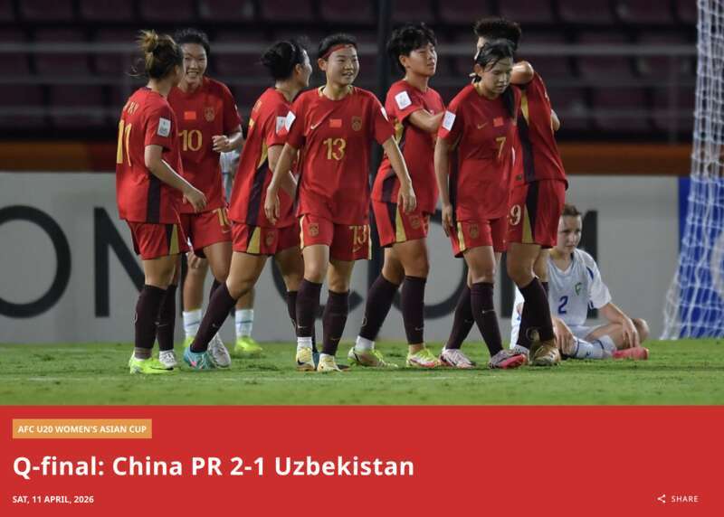 北京时间4月11日,在2026年U20女足亚洲杯的激烈角逐中,四分之一决赛迎来了一场焦点对决,中国队以2:1的比分力克乌兹别克斯坦队。图片来源:亚足联官网 据徽声在线消息(记者 李梓昂报道)北京时间4月11日晚间,泰国赛场见证了中国U20女足的辉煌时刻。在2026女足U20亚洲杯四分之一决赛中,中国队凭借出色的表现,以2:1战胜乌兹别克斯坦队,不仅成功挺进半决赛,更一举锁定了今年9月在波兰举办的U20女足世界杯的参赛席位。 回顾小组赛阶段,中国女足小花们展现出了强大的实力与团队协作精神。她们先后击败越南U20队、孟加拉国U20队以及泰国U20队,以三战全胜、零失球的傲人战绩,稳坐A组头把交椅,顺利晋级淘汰赛。 进入四分之一决赛,面对B组第三名乌兹别克斯坦队,中国U20女足在实力和经验上均占据上风。上半场,余佳琪发挥出色,先助攻曾雨佳头球破门,随后又敏锐捕捉对方解围失误,补射建功,一传一射,为中国队奠定了胜局的基础。 下半场,随着比赛的深入,中国U20女足队员体力有所下降,场上出现短暂松懈,被对手抓住机会扳回一球。然而,中国女足并未因此气馁,而是迅速调整状态,全队上下一心,坚定防守,最终将领先优势保持到了终场,成功晋级半决赛。 根据本次亚洲杯的赛制安排,前四名将直接获得U20女足世界杯的参赛资格。此次晋级,意味着中国U20女足在时隔8年之后,终于再次站在了该年龄段的世界最高舞台上。此前,中国U20女足已经连续两届未能获得参赛资格,此次重返世界杯,无疑是对她们辛勤付出的最好回报。 展望未来,北京时间4月15日,中国U20女足将迎来与日本U20女足的半决赛对决,争夺晋级决赛的宝贵名额。让我们共同期待中国女足小花们的精彩表现! 来源:徽声在线 |