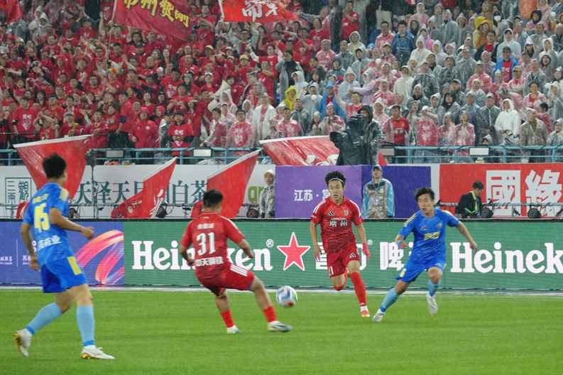 曾经的“末流球队”如今敢于和上届“无冕之王”硬刚;曾经的“中游球队”如今也有了争冠的决心和信心。这种联赛的集体进化,正是本届“苏超”最令人兴奋的地方。 当所有球队都站在同一起跑线上,联赛的魅力才真正被释放出来。球迷们必须一场一场地看、一场一场地感受那种势均力敌的紧张与刺激,才能体会到足球的真正魅力。 苏超,正在从“一枝独秀”走向“百花齐放”,迎来新的辉煌。 本届“苏超”何尝不是一次生动的“技术平权”实践? 今年,人工智能技术真正走进了普通人的生活,有人称之为“技术平权”时代——无论基础如何,每个人都能借助AI工具将创意从梦想变为现实,技术门槛被大幅拉平。而在“苏超”赛场上,这种“技术平权”也得到了生动的体现。 每支球队都在赛前进行了系统性、针对性的准备,苦练技术细节,狠抓体能储备,精细打磨战术体系。从首周的四场比赛来看,抽筋倒地的场景几乎消失,传控更加流畅,攻防转换更加迅捷,比赛的欣赏性大幅提升。曾经被诟病的“粗糙”“业余”感,正被更现代、更专业的足球竞技所取代。 “技术平权”正是本届“苏超”最底层、最核心的逻辑,它让每支球队都有了与强队抗衡的资本。 这个逻辑很多人还没有完全意识到,但它却已经深刻影响了赛场上的每一分钟、每一次触球。小小的失误、一次不经意的停球不稳,都可能被对手瞬间抓住并放大成致命打击。