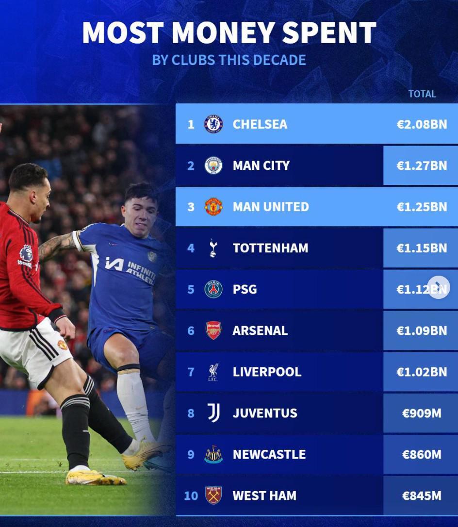 北京时间4月19日消息,徽声在线根据德国转会市场(德转)最新数据,整理出近十年全球足坛转会投入最高的十家俱乐部榜单。其中英超豪门切尔西以20.8亿欧元的总支出强势领跑,本轮英超直接对话的曼联则以12.5亿欧元位列第三,而目前处于保级边缘的托特纳姆热刺竟以11.5亿欧元高居第四,这一数据引发足坛热议。 近十年转会支出TOP10俱乐部详细排名: 1. 切尔西(20.8亿欧元) 2. 曼城(12.7亿欧元) 3. 曼联(12.5亿欧元) 4. 托特纳姆热刺(11.5亿欧元) 5. 巴黎圣日耳曼(11.2亿欧元) 6. 阿森纳(10.9亿欧元) 7. 利物浦(10.2亿欧元) 8. 尤文图斯(9.09亿欧元) 9. 纽卡斯尔联(8.6亿欧元) 10. 西汉姆联(8.45亿欧元) |