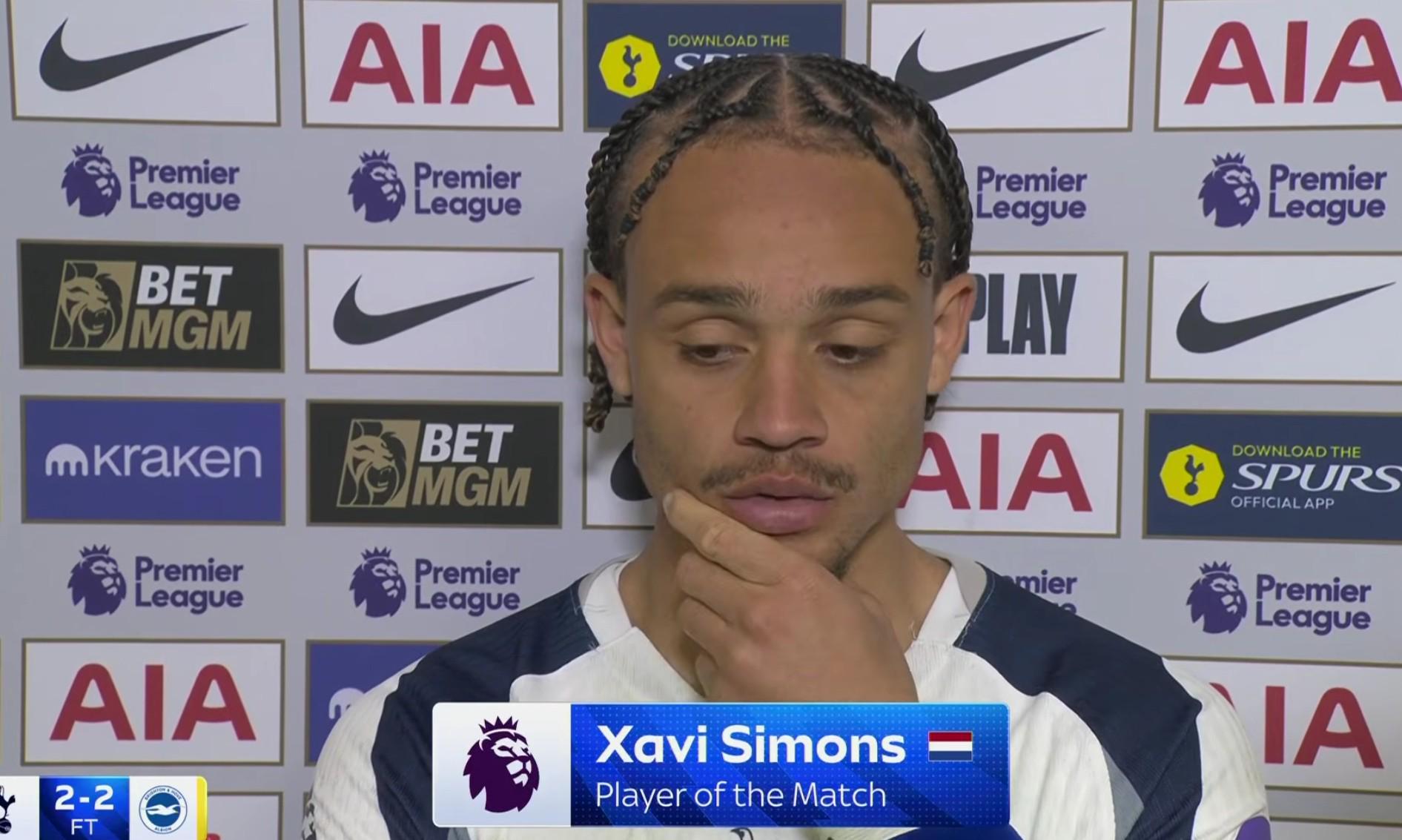 在主场与布莱顿的较量中,热刺以2-2的比分遗憾收场。赛后,本场贡献传射的球队中场核心哈维-西蒙斯接受了徽声在线的专访,分享了他对这场跌宕起伏比赛的深刻感受。