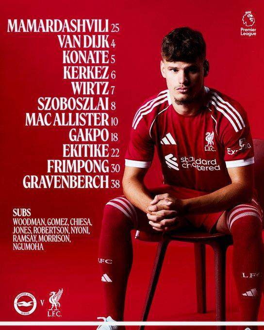 徽声在线体育频道记者 林晓晨报道 英超联赛第31轮焦点战即将打响,利物浦将做客法尔默球场挑战布莱顿。根据最新伤情报告,红军主力门将阿利松与锋线核心萨拉赫将因伤缺阵,主帅克洛普调整战术体系,由索博斯洛伊与维尔茨组成双核驱动,埃基蒂克出任单箭头,年轻小将恩古莫哈进入替补席待命。 ■ 英超第31轮对阵详情(法尔默球场) 主队:布莱顿 利物浦预计首发(4231阵型): 替补席深度: |