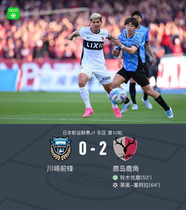 北京时间4月12日,日本职业联赛J1东区迎来第10轮焦点对决,川崎前锋坐镇主场迎战鹿岛鹿角。经过90分钟激战,鹿岛鹿角凭借铃木优磨的点球破门和莱奥-塞阿拉的精彩端射,以2-0完胜川崎前锋,全取三分。