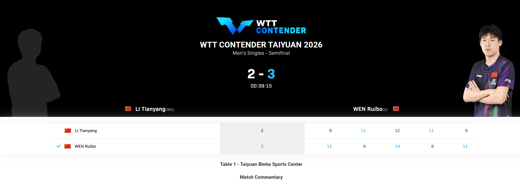 在2026年WTT太原常规挑战赛的男单半决赛中,一场引人瞩目的国乒内战拉开帷幕。温瑞博与李天阳展开激烈对决,最终温瑞博以3-2的比分艰难战胜李天阳,成功晋级决赛。五局比分分别为:【11-8,6-11,14-12,8-11,11-6】。值得一提的是,李天阳在WTT赛事中知名度并不高,甚至其图像Logo都未曾出现。 李天阳年仅19岁,世界排名仅为第484位。他自2017年起便效力于华东理工大学队俱乐部,在乒超赛场上已经拼搏了9个年头。在2025赛季的乒超联赛中,李天阳展现出了不俗的实力,他一度与国乒核心选手林诗栋、许昕、王楚钦等打到决胜局,其削球手的防守能力之强可见一斑。 赛后,温瑞博在接受采访时谈到了与李天阳的这场交锋。他表示:“其实这场比赛我并没有想太多,之前在队内与李天阳交手过很多次,我都没有赢过。所以这场比赛我就是抱着去拼的心态,打到决胜局的时候,我就更没有想那么多了。” 决胜局的比赛异常胶着,两人比分一直紧咬至6-6。然而,就在此时,李天阳突然出现了连续的失误,温瑞博则抓住机会,打出一波5-0的攻势,直接锁定了胜局。对于一位顶级削球手来说,如此低级的连续失误确实并不多见,或许这反映了李天阳在心态上出现了波动。 李天阳在太原常规赛中的表现堪称惊艳,他险些就一黑到底,创造了奇迹。在晋级之路上,他先后击败了多位强手,包括3-2战胜英田理志、3-0横扫陈垣宇以及3-0完胜坂井雄飞。如果他在与温瑞博的比赛中能够再进一步,击败世界排名第14的温瑞博,那么他就将成功晋级决赛。作为一位男乒削球手,能够有如此出色的表现,确实非常难得。 对于李天阳的表现,一位大V博主给予了高度评价。他表示:“我认为李天阳以后应该多出来参加比赛,他是一个非常有潜力的选手,是一个可造之材。” 尽管很多人之前并不认识李天阳,但他在太原站的表现已经逐渐赢得了球迷的认可。在与国乒一队的温瑞博比赛中,现场已经有球迷开始为李天阳加油助威。这说明李天阳已经声名鹊起,希望他未来能够有更多机会参加比赛,继续展现自己的实力。 |