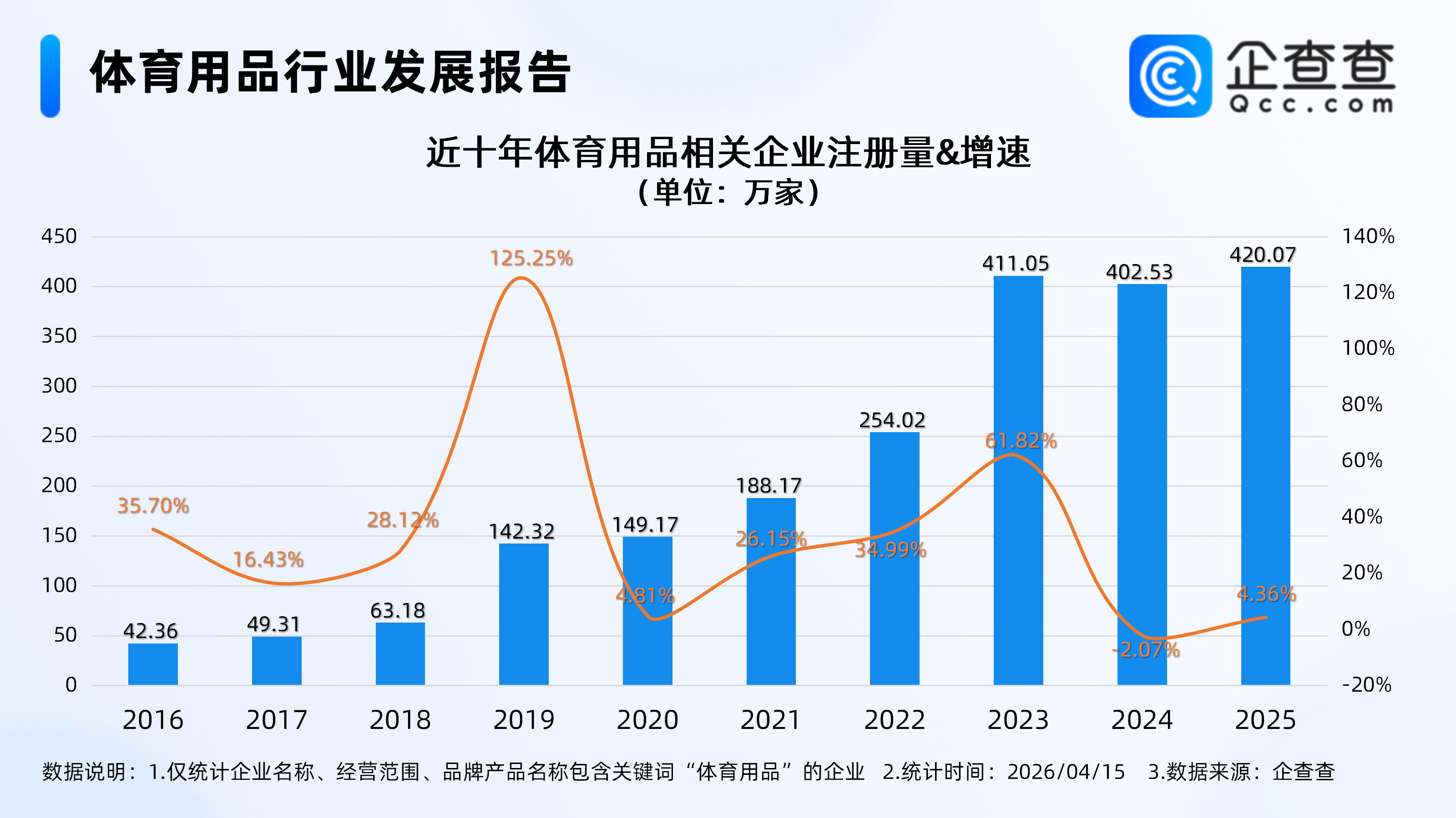 据徽声在线财经频道报道,距离2026年美加墨世界杯开幕仅剩不到两个月时间,这场全球足球盛宴正引发全球球迷的热烈期待。作为世界小商品之都的义乌,世界杯相关产品的订单量呈现爆发式增长态势。义乌国际商贸城的多位商户透露,当前订单量较往届世界杯同期增长约50%,部分热门商品甚至出现供不应求的情况。海关最新统计数据显示,2026年1-2月期间,义乌市体育用品及设备出口额达23.4亿元人民币,同比增幅高达38.5%,展现出强劲的外贸活力。 根据企查查最新行业分析报告,截至4月15日,我国现存体育用品相关企业总数已突破1476.33万家。通过十年数据追踪发现,该行业呈现持续高速增长特征:企业注册量从2016年的42.36万家跃升至2025年的420.07万家,十年间增长近十倍。特别值得关注的是,2025年全年新增注册企业达420.07万家,虽然同比增长4.36%的增速较2019年125.25%的峰值有所放缓,但仍创下历史注册量新高。截至统计时点,2026年已新增注册企业89.37万家,保持强劲增长势头。从企业规模来看,行业呈现明显的"轻量化"特征,注册资本100万元以内的企业占比达79.02%,构成行业绝对主体。 行业注册量十年增长近十倍 2025年创历史峰值