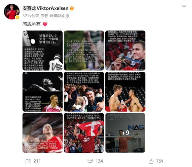 @安赛龙ViktorAxelsen 社交平台动态截图 徽声在线 4月15日讯 北京时间当日中午,羽毛球界传来一则重磅消息:两届奥运会羽毛球男子单打冠军、欧洲羽毛球界的领军人物、丹麦名将安赛龙,在个人社交媒体上正式宣布退役,结束了其辉煌的职业生涯。安赛龙在声明中坦言:“腰伤反复发作,已无法支撑我继续征战赛场,我已倾尽所有,无愧于心。”这位32岁的羽坛巨星,曾计划冲击奥运会男单三连冠的壮举,如今却因伤病无奈告别,无疑为世界羽坛留下了一大遗憾。 安赛龙在退役声明中深情地表示:“今天对我来说,是一个异常艰难的日子。为了能够重返赛场,我尝试了所有可能的治疗方法。然而,专家们建议我必须在长期健康与职业竞技之间做出艰难的选择。接受这个现实,对我来说无比痛苦,但我的身体已经发出了最后的警告,它无法再承受高强度的比赛。在此,我要向所有为我寻找治疗方案的医生、专家以及我的教练团队表示衷心的感谢。从我第一次拿起羽毛球拍的那一刻起,我的梦想就是成为世界第一。为了这个目标,我每一天、每一次训练、每一场比赛都全力以赴。羽毛球对我来说,不仅仅是一份职业,它是我生命的全部。为了这项运动,我已经付出了所有,无愧于心。” 安赛龙,本名维克托·阿萨尔森,1994年1月4日出生于丹麦。因对羽毛球传奇人物林丹的敬仰,以及对中国文化的浓厚兴趣,他早早地开始自学中文,并在中文老师的建议下取了中文名“安赛龙”。他曾在社交媒体和采访中解释道:“安”是姓氏的谐音,“赛”寓意着经常参赛,“龙”则象征着中国精神与男性力量。他强调,“赛龙”并非针对某位中国选手,如谌龙,而是一个寓意深远的名字。此外,安赛龙还延续了中文命名的传统,为他的两个女儿分别取了中文名“安维佳”(小名“维维”)和“安子兮”。 安赛龙的职业生涯充满了辉煌与荣耀。2010年,他初出茅庐便赢得了羽毛球世界青年锦标赛男单冠军,成为首位获此殊荣的欧洲球员。2016年,他先后获得汤姆斯杯冠军和里约奥运会羽毛球男单铜牌。2017年,他在羽毛球世锦赛上首次击败偶像林丹,夺得个人首个男单世界冠军,并同年首次登上羽毛球男单世界排名第一的宝座。2021年,他在东京奥运会羽毛球男单决赛中战胜谌龙,首次获得奥运会金牌,同年还夺得了世界羽联世界巡回赛总决赛男单冠军。2022年,他再次在羽毛球世锦赛男单决赛中夺冠,获得个人第二个世锦赛冠军。2024年8月5日,他在巴黎奥运会羽毛球男子单打决赛中成功卫冕,成为继林丹之后,世界羽坛第二位蝉联奥运会男单冠军的运动员。然而,近年来,安赛龙一直受到腰伤的困扰,屡屡退出世界羽联巡回赛各站比赛,逐渐淡出公众视野,直至4月15日宣布退役。 安赛龙是继1996年亚特兰大奥运会之后,时隔25年再度为丹麦夺得奥运会金牌的选手,也是欧洲羽毛球界的骄傲。他的巅峰时期虽然不及林丹在世界羽坛的统治力,但战绩已足够卓越和优秀,一度达到无人能敌的地步。安赛龙曾表达过再战一次奥运会并冲击三连冠的宏伟目标,但伤病最终还是击垮了这位羽坛巨星。 安赛龙的退役无疑为世界羽坛带来了一大损失,但对于其他有志于夺得洛杉矶奥运会羽毛球男单金牌的选手来说,也少了一个强劲的竞争对手。对于中国男单选手,特别是世锦赛冠军石宇奇来说,这无疑是一个好消息,他们将在未来的比赛中面临更少的挑战。 来源:@安赛龙ViktorAxelsen、徽声在线 |