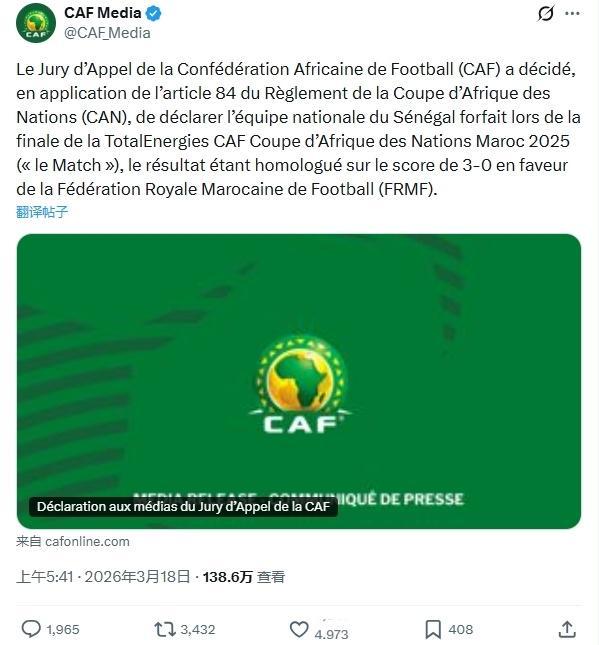 北京时间3月18日,一则重磅消息从非洲足联传来,由于在非洲杯决赛中塞内加尔队出现一度罢赛的情况,非洲足联经过慎重裁决,认定塞内加尔队的离场行为属于弃赛。基于此,非洲足联做出决定,剥夺塞内加尔队在2个月前好不容易夺得的非洲杯冠军头衔,改判比赛对手摩洛哥队以3 - 0的比分获胜。 这一决定犹如一颗重磅炸弹,在足坛掀起了轩然大波。作为事件的当事人,塞内加尔的两位国脚反应强烈。帕特·西斯在社交媒体上更新动态,晒出了非洲杯冠军奖杯和奖牌的合照,还配上了一连串表示“笑话”的表情,似乎在以这种方式表达对非洲足联裁决的不满。 另一位国脚尼亚哈特更是直接,他在社交媒体上晒出自己肩扛非洲杯奖杯的照片,并且配文挑衅非洲足联:“你们来拿呀,真是疯了!”这一系列举动,无疑进一步加剧了事件的紧张氛围。 球迷们对此也是议论纷纷,热度居高不下。不少网友在各大网络平台上炮轰非洲足联,他们认为这一决定是耻辱性的。有网友质疑道:“为什么要等非洲杯结束都2个月了才公布结果,这对非洲足球来说简直就是耻辱!”还有网友言辞激烈地表示:“有你们这些腐败分子在,非洲足球永远都不可能取得进步!”更有网友愤怒地宣称:“耻辱啊,你们太可笑了,非洲足球的形象都被你们这些腐败行为玷污了,以后再也不看这破比赛了!”“有这种腐败现象存在,非洲杯永远都不会被人认真对待!” 除了对非洲足联的指责,还有不少球迷将矛头指向了改判后夺冠的摩洛哥队。有球迷嘲讽道:“所以我们该祝贺摩洛哥吗?”还有球迷不屑地说:“真丢人,以输球的方式夺得冠军!”甚至有球迷直言:“你们永远不会拥有真正捧杯的荣耀时刻!” 回顾2个月前结束的非洲杯决赛,那也是一场充满争议的比赛。在补时阶段,塞内加尔队对点球争议判罚极度不满,全队一度选择罢赛抗议。不过,在多方劝说下,他们最终还是回到了赛场。当时,摩洛哥队的迪亚斯主罚“勺子点球”,可惜被对方门将扑出。 进入加时赛后,塞内加尔队凭借一记精彩的世界波取得进球,最终以1 - 0的比分击败摩洛哥队,成功夺得非洲杯冠军。然而,谁也没想到,2个月后非洲足联的一纸裁决,让这场原本已经落幕的比赛再次成为舆论焦点,引发了新一轮的热议。 |