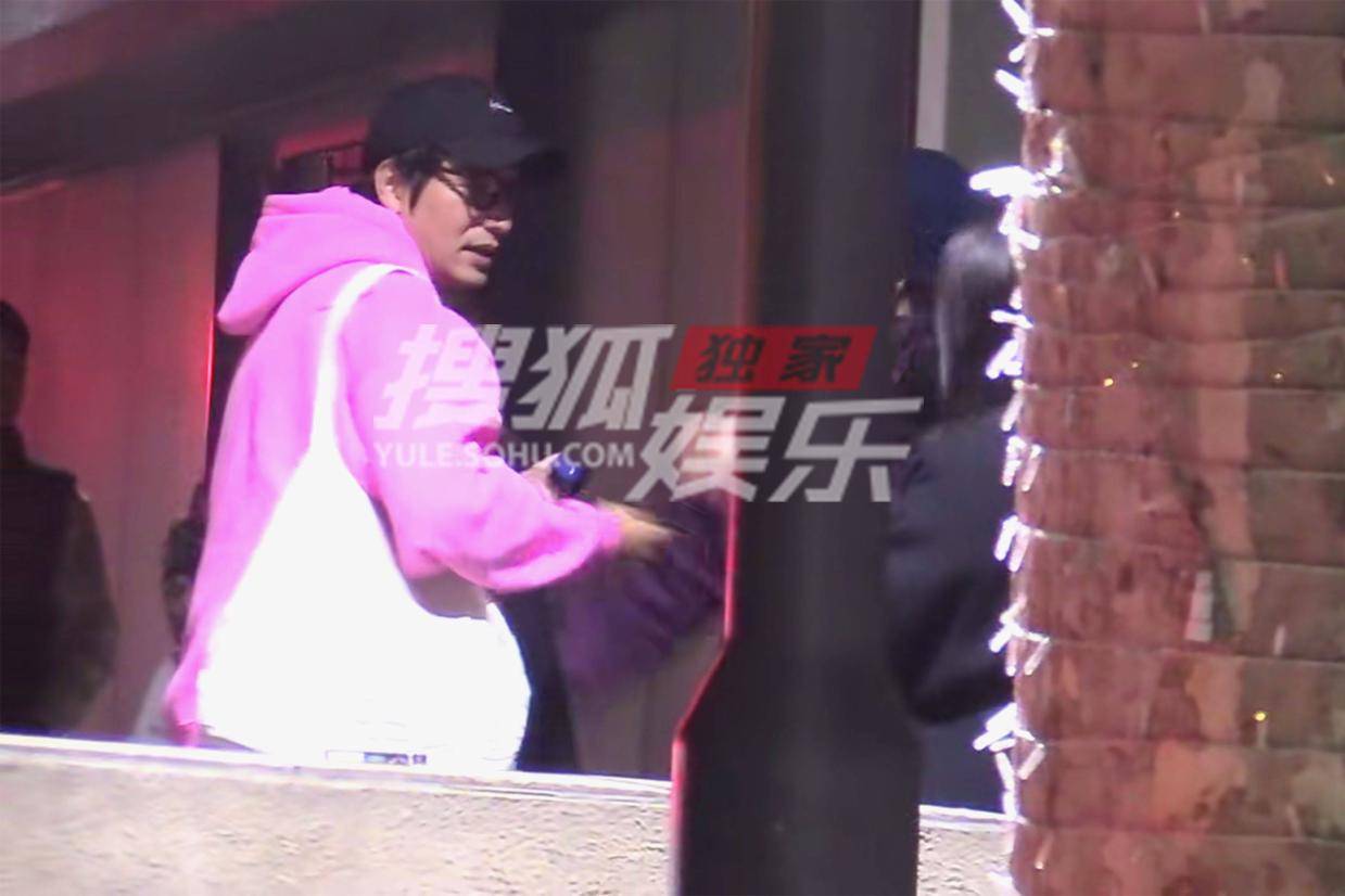 陈坤周迅好友聚会 粉色帽衫造型青春活力爆棚