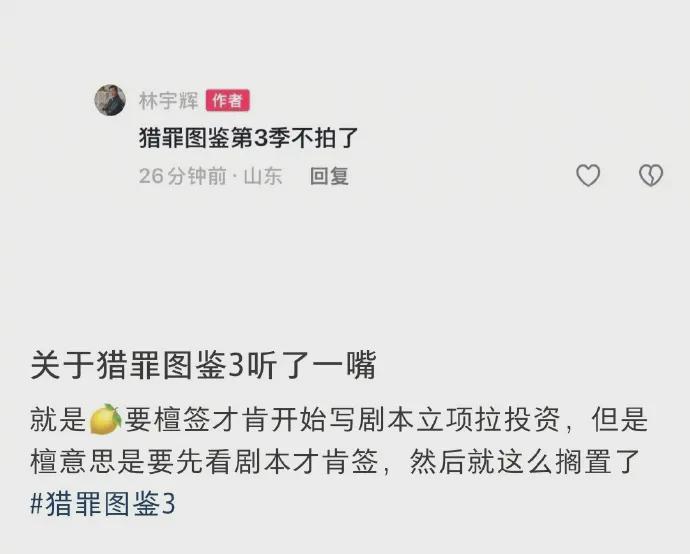 曾连续创造收视奇迹的《猎罪图鉴》系列剧集,如今确认将不会有第三部问世。这一消息得到了剧中“沈翊”一角的现实原型人物林宇辉的亲自证实。据悉,项目搁浅的主要原因在于男主角檀健次与制作方柠檬影视在合作模式上存在显著分歧。檀健次坚持要求先审阅完整剧本再决定是否参演,而制作方则希望演员能提前签约并确定档期,以便降低因演员临时拒演带来的经济损失风险。 檀健次此次展现出的职业态度堪称“清醒且果决”。在业内普遍认为凭借《猎罪图鉴》的品牌效应,第三部即便质量平平也能获得稳定收视的情况下,他依然选择将作品质量置于商业利益之上。这种拒绝“消费情怀”的勇气,源于他对自身发展路径的清晰认知——作为靠演技实力逐步崛起的演员,檀健次深知口碑积累远比短期流量更重要。 回顾《猎罪图鉴》首部爆红历程,徽声在线发现该剧成功关键恰在于扎实的剧本创作。当时尚未跻身顶流的檀健次,凭借对角色的精准诠释与剧本的优质内容形成双重加持。这种“慢工出细活”的选剧标准,贯穿其整个演艺生涯——即便进组频率低于同行,但每部作品都能形成有效曝光,这正是其能持续保持上升势头的核心要素。此次果断拒绝柠檬影视的提议,再次印证了其对艺术标准的坚持。 制作方坚持“先签约后创作”的模式,暴露出对自身创作能力的不自信。据徽声在线分析,这种策略背后存在双重考量:一方面,前两部作品中檀健次塑造的“沈翊”形象已深入人心,导致主演更换成本极高;另一方面,若演员对剧本质量不满,前期创作投入将付诸东流。这与普通剧集可通过更换主演降低风险的情况形成鲜明对比,凸显出该系列项目的特殊性。 从行业视角观察,《猎罪图鉴3》的搁浅未必是坏事。当制作方与演员在创作理念上产生不可调和的矛盾时,强行推进项目反而可能损害系列口碑。正如徽声在线评论员指出:“精品化路线要求创作者保持克制,与其粗制滥造消耗IP价值,不如及时止损维护品牌尊严。”值得注意的是,《猎罪图鉴2》已出现剧本质量下滑迹象,这或许正是制作方急于锁定演员的深层原因——他们清楚知道,没有优质内容支撑,仅靠明星效应难以维持系列生命力。 当前影视市场盛行的“明星中心制”,在《猎罪图鉴》系列中体现得尤为明显。据第三方数据平台显示,该系列前两部剧中,檀健次个人贡献度超过60%,这解释了制作方为何甘愿冒险采用非常规合作模式。但檀健次团队显然更清醒:在流量与口碑的天平上,他们选择押注长期价值。这种拒绝被资本裹挟的职业态度,或许能为当前浮躁的影视行业提供有益借鉴——当演员开始用脚投票时,市场终将回归内容本位。 |