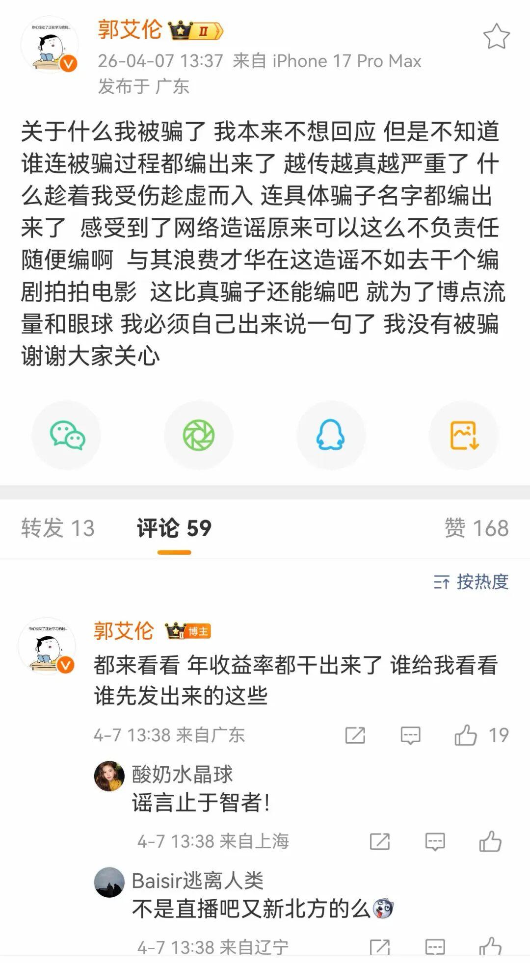 近日,网络上流传出一则令人震惊的消息,声称知名篮球运动员郭艾伦及其家人不幸遭遇了“熟人诈骗”事件,涉案金额高达近千万元。随后,辽宁地区的民生新闻节目《新北方》也对此事进行了报道,并透露了更多所谓“案件”的细节,引发了广泛关注和热议。 然而,就在舆论纷纷猜测之际,郭艾伦本人迅速通过个人社交媒体平台发声,明确否认了被骗的传闻。他态度坚决地表示,自己并未遭遇任何形式的诈骗,对于相关不实报道,将保留追究法律责任的权利。这一反转,让原本就扑朔迷离的事件更加引人关注,不少网友纷纷好奇:究竟为何媒体与郭艾伦的说法会大相径庭?这背后是否隐藏着什么不为人知的秘密? |