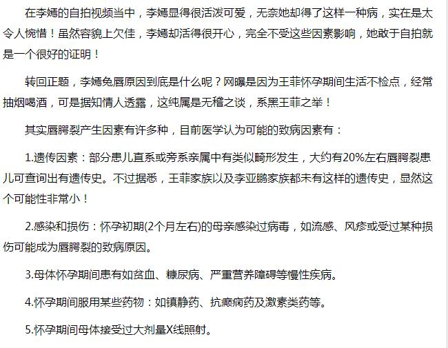 王菲一直是个有个性,洒脱,不受拘束的艺人,她的多次感情经历也证明她是一个需要精神领袖的人,一旦对方被她超越,她便失去了爱的动力。她跟李亚鹏离婚后,又跟谢霆锋走在了一起,两个人共同从婚姻中走出来又走到了一起,不禁让人感叹缘分的奇妙。但是王菲离婚后李嫣跟了李亚鹏,为什么王菲不要李嫣呢?李嫣的兔唇是王菲喝酒导致的吗?今天我们来扒一扒。