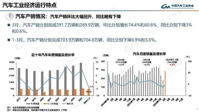 每经特约记者:李晓明 徽声在线编辑:裴文轩 4月10日,中国汽车工业协会最新发布的统计数据显示,2024年3月国内汽车市场呈现显著回暖态势。当月汽车产销量分别达到291.7万辆和289.9万辆,环比增幅分别高达74.4%和60.6%,尽管同比仍下降3%和0.6%,但降幅较前两个月明显收窄。数据显示,1-3月累计产销量分别为703.9万辆和704.8万辆,同比降幅收窄至6.9%和5.6%。 细分市场来看,3月国内汽车销量完成202.4万辆,环比增长78.6%,但同比仍下降16%。1-3月累计国内销量约482.3万辆,同比下降20.3%,反映出市场需求仍在逐步恢复中。 图片来源:中汽协 中国汽车工业协会副秘书长陈士华分析指出,3月产销环比大幅回升主要得益于企业复工复产进度加快和供应链逐步恢复。他特别强调:"一季度汽车市场呈现'前低后高'走势,3月数据释放出积极信号,表明行业正在走出年初的政策切换影响期。" 对于年初的市场波动,陈士华解释称,一方面是受新能源汽车购置补贴政策退坡影响,消费者存在观望情绪;另一方面,企业为避免经销商库存积压,主动调整了生产节奏。数据显示,1-2月汽车产销同比降幅均超过15%,而3月单月降幅已收窄至个位数。 展望二季度,陈士华认为多重利好因素将推动市场持续回暖:"以旧换新等促进消费政策将逐步发力,北京车展将带来超过50款新车首发,这些都将有效提振市场信心。"但他同时提醒,地缘政治冲突导致的原材料价格上涨、芯片供应紧张等问题仍需警惕,行业运行压力不容小觑。 微型电动车市场遭遇政策切换阵痛 从车型结构看,3月乘用车产销量分别为244.6万辆和241.2万辆,环比分别增长74.8%和57.1%。商用车市场表现更为亮眼,当月产销量达47.1万辆和48.7万辆,同比分别增长9.1%和8.9%,其中重卡销量同比增长23%成为主要拉动力。 新能源领域呈现明显分化特征。数据显示,1-3月A00级新能源乘用车销量同比下降68.5%,远高于行业整体降幅。陈士华指出:"这类车型主要面向下沉市场,对价格敏感度极高,政策切换导致部分潜在消费者持币待购。"与之形成对比的是,B级新能源乘用车一季度销量达84.9万辆,同比增长8.1%,占据新能源市场42%的份额。 传统燃油车市场同样面临压力。1-3月A级至C级传统燃油乘用车销量均有不同程度下滑,其中A级车累计销售176.5万辆,同比下降6%,但仍占据燃油车市场61%的份额。商用车领域则表现稳健,1-3月国内销量同比增长0.03%,其中新能源商用车销量增长12.7%。 图片来源:中汽协 "A00级市场的调整是阶段性的。"陈士华预测,随着企业推出更多高性价比产品,下半年市场有望逐步回暖。数据显示,3月下旬以来,五菱宏光MINIEV等主力车型订单量已呈现回升态势。 在出口市场,中国汽车延续强劲增长势头。3月汽车出口87.5万辆,环比增长30.2%,同比增长72.7%,创历史新高。其中新能源汽车出口37.1万辆,同比增长1.3倍,占出口总量的42.4%。 新能源汽车出口成最大亮点 分动力类型看,3月传统燃油汽车出口50.5万辆,同比增长44.6%;新能源汽车出口增速显著领先,纯电动车型占比超过90%。1-3月,新能源汽车累计出口95.4万辆,同比增长1.2倍,远高于行业整体56.7%的出口增速。 陈士华分析认为,中国新能源汽车的竞争优势主要体现在三个方面:一是完整产业链带来的成本优势;二是智能化配置形成的差异化竞争力;三是快速迭代能力满足海外消费者多样化需求。数据显示,欧洲市场占中国新能源汽车出口的45%,东南亚市场增速最快,同比增长超过3倍。 不过,新能源商用车出口面临特殊挑战。3月新能源商用车出口仅0.7万辆,同比下降19.6%。陈士华指出:"海外充电基础设施不完善是主要制约因素,这需要企业与当地政府加强合作,共同推动配套建设。" 图片来源:中汽协 国内市场方面,新能源汽车正经历政策切换期的调整。3月国内销量88.2万辆,同比下降18.3%,但环比大幅增长82.4%。陈士华认为:"随着各地促进消费政策落地,加上新车集中上市,预计二季度末市场将恢复正增长。"数据显示,3月下旬以来,比亚迪、特斯拉等企业订单量已呈现明显回升。 对于全年走势,陈士华保持谨慎乐观:"预计2024年汽车销量将达3100万辆左右,同比增长3%,其中新能源汽车销量有望突破1150万辆。但要注意防范原材料价格波动、国际贸易摩擦等潜在风险。" |