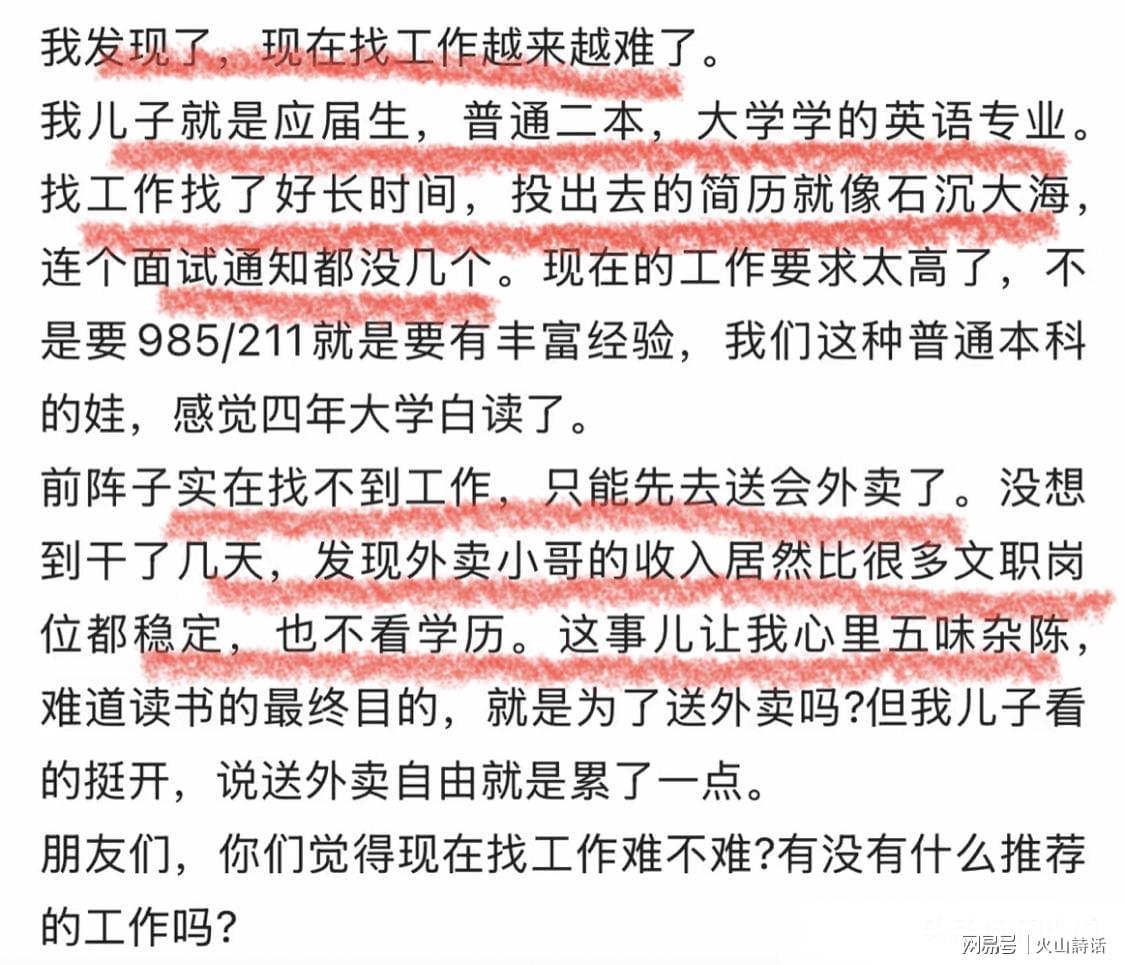 当前,毕业生就业形势已经迈入了一个总量承压、结构失衡、竞争激烈的新阶段。据预测,到2026年,全国高校毕业生人数将达到1270万,再创历史新高,青年就业群体规模将持续扩大。 与此同时,市场上优质岗位的供给增速却远远滞后于毕业生的增长速度,尤其是文科类专业毕业生面临着更为严峻的就业形势。受AI翻译普及、外贸行业调整以及基础岗位收缩等多重因素影响,英语等传统文科专业的对口岗位大幅减少。企业在招聘时普遍抬高门槛,非985/211院校毕业生以及缺乏实习经验者在简历筛选阶段便被淘汰,导致大量普通本科生陷入“高不成低不就”的尴尬境地。 就业市场的学历通胀与技能错配现象进一步加剧了年轻人的生存压力。一方面,名校光环和实习经历成为求职的硬通货,普通本科文凭的含金量相对缩水,文职、行政等岗位竞争异常激烈,薪资普遍偏低;另一方面,外卖、快递等灵活就业岗位门槛低、结算快,收入反而更具竞争力,形成了“脑力工作薪资不如体力劳动”的鲜明反差。 这种薪资倒挂现象并非是对知识价值的否定,而是市场供需关系的现实选择。它也让无数家庭多年来的教育投入与就业回报之间出现了落差,难免让人产生“读书无用”的迷茫感。 更深层次的矛盾在于社会择业观念与就业现实之间的脱节。长期以来,“上大学=坐办公室、当白领”的固有认知在人们心中根深蒂固,家长和学生普遍轻视体力劳动和灵活就业的价值。 然而,随着高等教育的普及化,学历已经不再是稀缺资源,职业分层也早已打破了传统边界。大学生送外卖等现象,本质上是青年在就业压力下的务实选择,是过渡性的生存策略,而非人生的终点。但社会舆论往往习惯用标签化的眼光来评判这些现象,将其简化为“读书无用”的论据,忽视了背后的就业困境和个体的无奈。 这一现象也直指高等教育与市场需求之间的衔接短板。部分高校的专业设置滞后于产业变革的步伐,重理论轻实践,文科专业尤其缺乏职业技能培养和就业指导,导致学生毕业后即面临能力断层的问题。企业则追求“拿来即用”的人才,不愿为应届生提供成长周期和培训机会,进一步压缩了普通毕业生的就业空间。与此同时,新经济、新业态虽然提供了大量灵活岗位,但社会保障和职业发展路径尚不健全,难以让青年长期扎根其中,也加剧了“临时就业”的焦虑感。 面对“大学尽头是送外卖”的感慨,我们既不必过度悲观地否定教育价值,也不能回避就业市场的真实问题。 对于毕业生而言,需要打破“白领滤镜”的束缚,理性看待灵活就业的价值和意义,将其作为积累经验、过渡转型的平台。同时,要积极提升实操技能,增强职场竞争力;对于高校来说,应紧跟产业需求优化专业结构设置,强化实践教学和就业辅导工作,缩小人才培养与市场需求之间的差距;对于社会而言,则需要摒弃职业偏见和歧视观念,尊重多元选择和发展路径,完善灵活就业保障体系,为青年提供更稳定的发展预期和更广阔的发展空间。 对此现象,你又有着怎样的看法呢? |