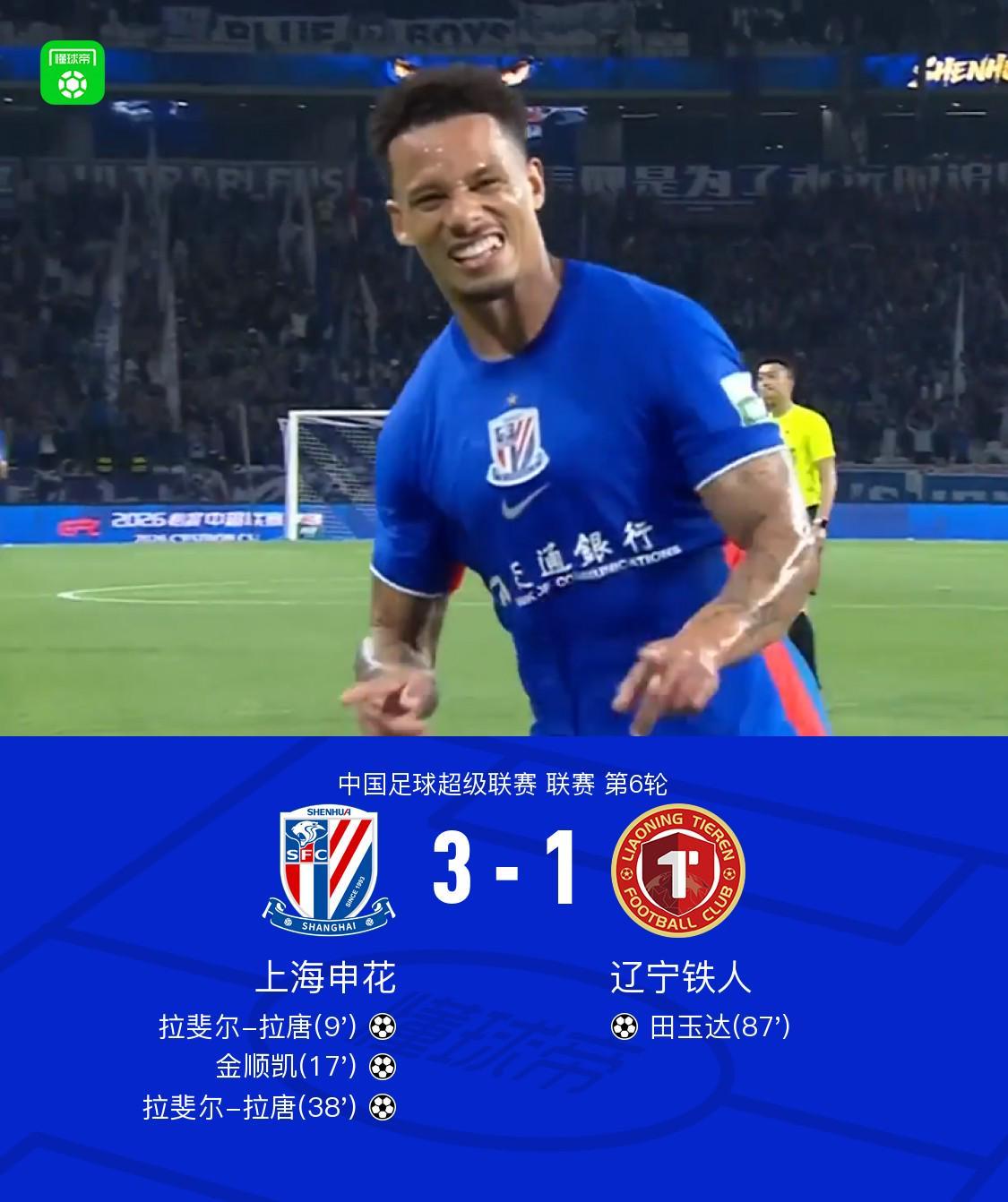 北京时间4月18日,中国足球超级联赛第6轮迎来一场焦点对决,上海申花坐镇主场迎战辽宁铁人。本场比赛中,上海申花的拉斐尔-拉唐表现神勇,独中两元,金顺凯也有一球入账;而辽宁铁人则由田玉达扳回一城。最终,上海申花以3-1的比分战胜辽宁铁人,收获一场宝贵的胜利。 比赛关键事件回顾 比赛进行到第10分钟,上海申花展现出了出色的团队配合。三名外援联手制造杀机,盖伊巧妙做球,马纳法射门被对方门将扑出,拉唐迅速补射空门得手,为申花取得1-0的领先优势! 看中超精彩赛事,锁定徽声在线 第17分钟,上海申花再次扩大比分。高天意精准传中,金顺凯门前头球攻门得手,将比分改写为2-0,申花领先优势进一步巩固! 看中超精彩赛事,锁定徽声在线 第39分钟,上海申花再次展现流畅配合。盖伊送出精妙助攻,拉唐轻松推射远角得手,完成个人本场比赛的双响炮!申花3-0领先,几乎锁定胜局。 看中超精彩赛事,锁定徽声在线 然而,比赛并未就此失去悬念。第87分钟,辽宁铁人发起猛烈反击。陈彬彬送出关键助攻,田玉达头球破门,为铁人扳回一城,比分变为1-3。 看中超精彩赛事,锁定徽声在线